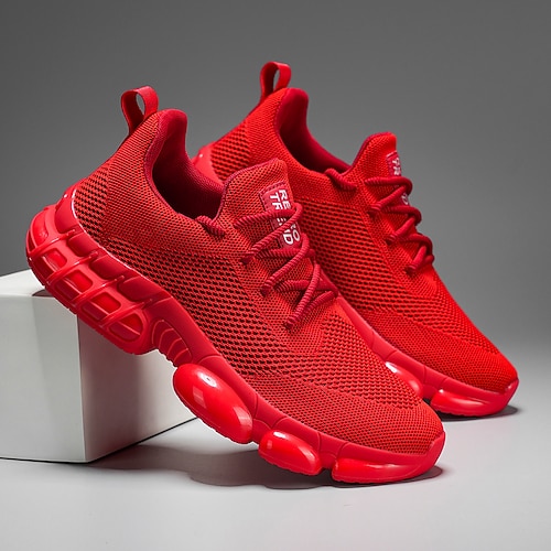 scarpe da ginnastica sportive rosse da uomo: design alla moda con un colore rosso acceso, ideali per gli obiettivi di fitness natalizi e gli outfit delle feste