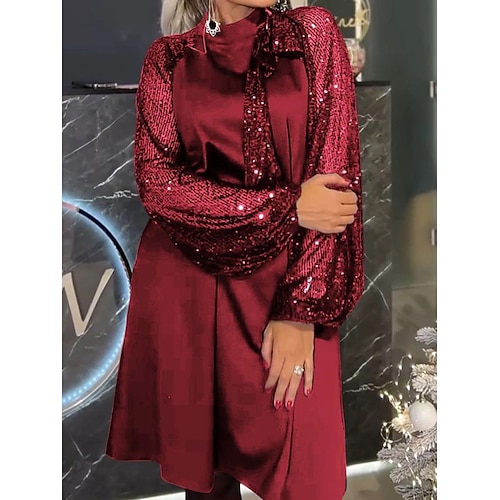 Natale Per donna Abito al ginocchio Abito a trapezio Elegante Casual Feste Vestibilità regolare Tinta unica Manica Lunga Collo Alto Blu Nero Rosso Viola Primavera Autunno Inverno