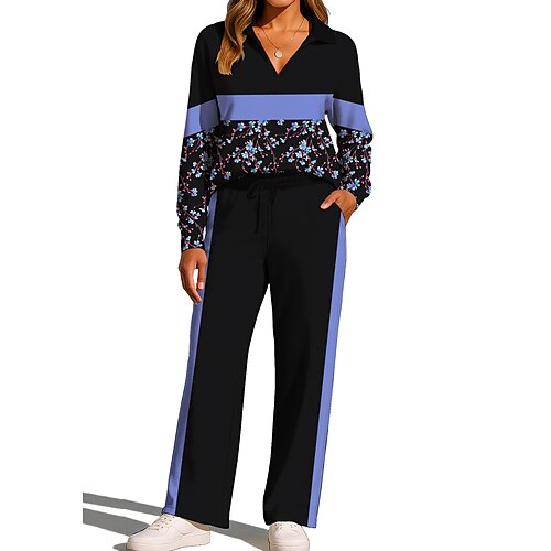 Per donna Maglia Tuta da Ginnastica Pantaloni da Tuta Coulisse Tasca Floreale Giacca e Pantaloni da Tuta Set di Abbigliamento Sportivo Loungewear Estate Blu / nero Lilla Allenamento in Palestra