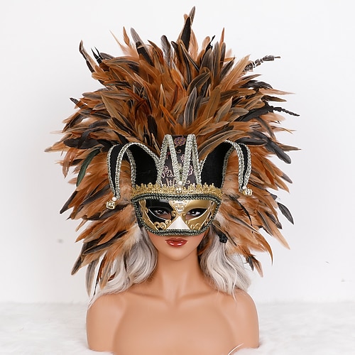 Carnival 2026 Carnival Mask Jolly Clown Venetian Carnival Mask Feather Halloween Adults' Unisex Halloween Mardi Gras Carnival Party Halloween Easy Carnival Costume Dress Up