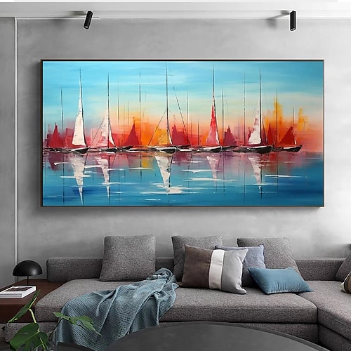 Luxuriöses, handgefertigtes, lebendiges 3D-Ölgemälde mit einem Segelboot und einer lebendigen Segelbootszene, reich an farbenfrohen Pinselstrichen und strukturierten Details, die Impasto-Techniken für