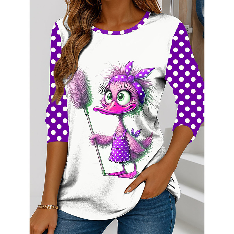 Women's T Shirt Graphic Cartoon Polka Dot Vintage Stylish Classic Long Sleeve Crew Neck Regular Tops Daily Print Red Blue Purple Green Spring Fall Winter