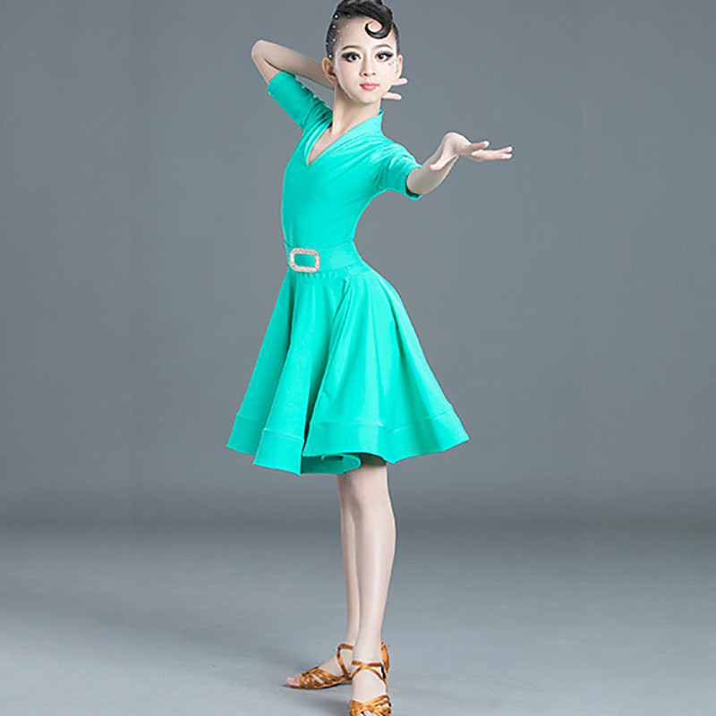 Latin Dance Kids' Dancewear Dress Pure Color Splicing Girls' Performance Training Half Sleeve High Polyester