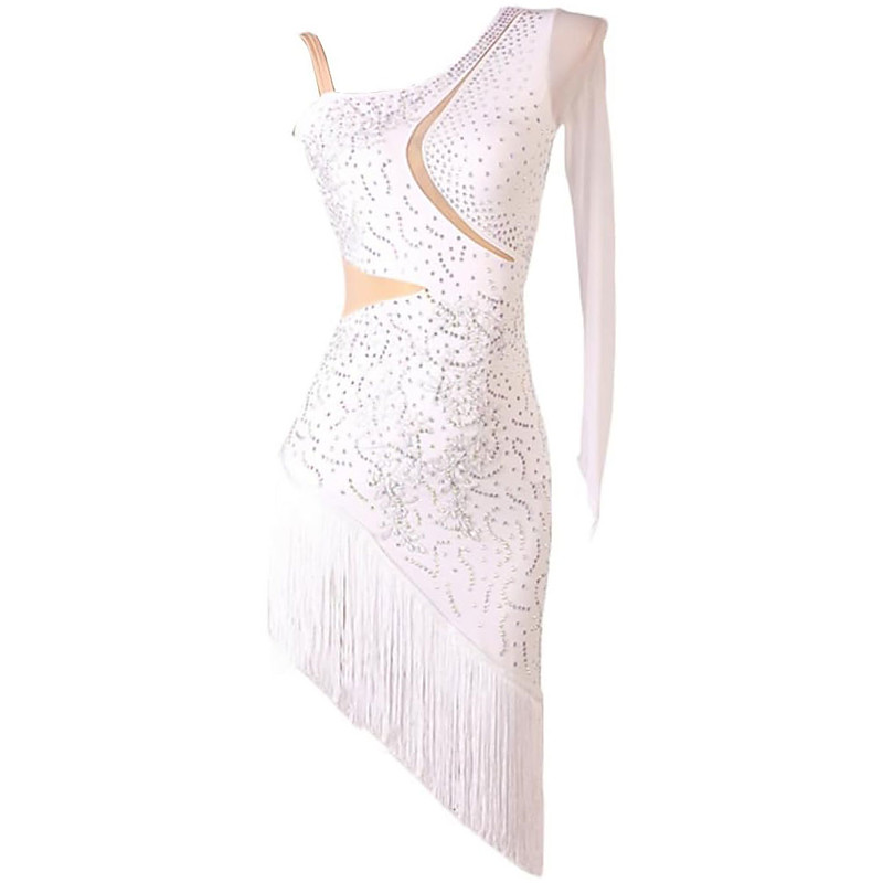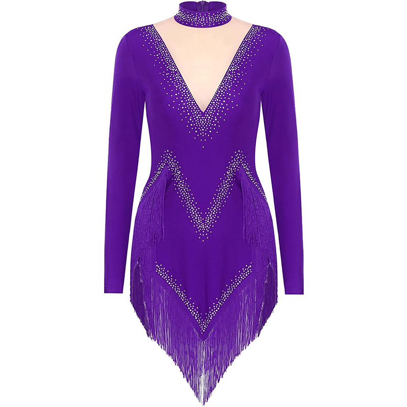 Latin Dance Dress Rhinestone Tassel Women's Girls' Performance Training Long Sleeve High Spandex Tulle