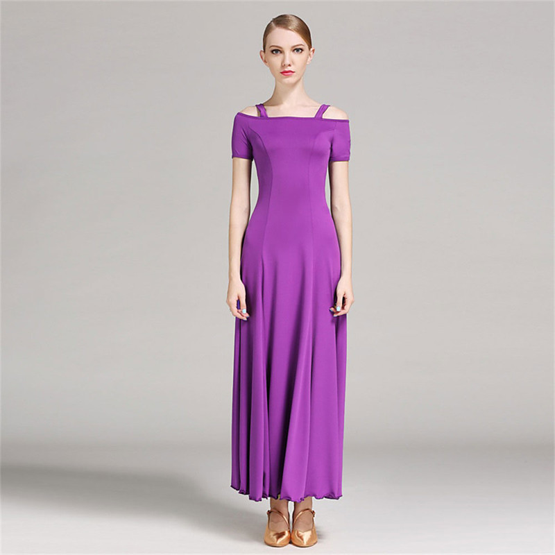 Women's Ballroom Dance Dress Rhinestone Long Sleeve Waltz Tango Latin Competition Performance Gown with Flowing Ribbon and Embellished Appliques – Purple