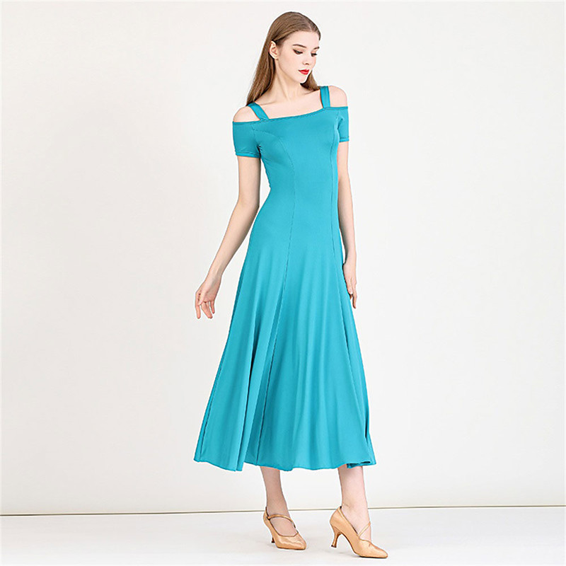 Off-Shoulder Ruffled Ballroom Dance Dress for Women - Elegant A-Line Gown for Competitions, Latin, and Dance Events - Black