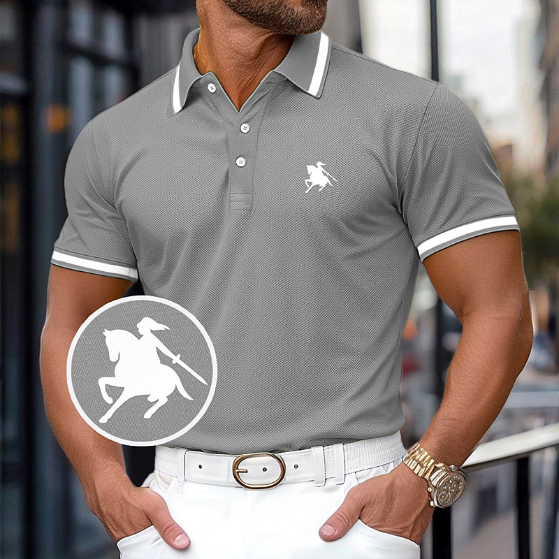 Men's Cotton Polo Shirt Casual Business Ribbed Polo Collar Classic Short Sleeve Basic Modern Solid Color Horizontal Stripes Buttons Logo Summer Spring Summer Regular Fit Dark Brown Dark Red Black