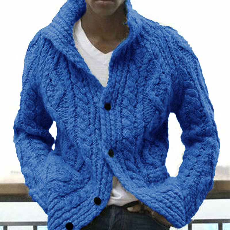 Male Cardigan Cable Knit Regular Knitting Solid / Plain Color Shawl Collar New Year's events Clothing Apparel Winter Autumn / Fall Black Blue S M L