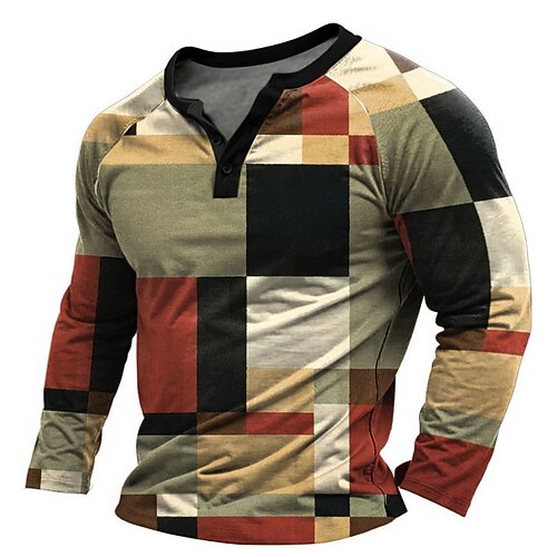 Per uomo Grafico Patchwork Maglietta Maglia Henley Manica Lunga Designer Essenziale Classico All'aperto Quotidiano Sportivo Primavera Autunno Multicolore Nero Henley Maglietta Henley