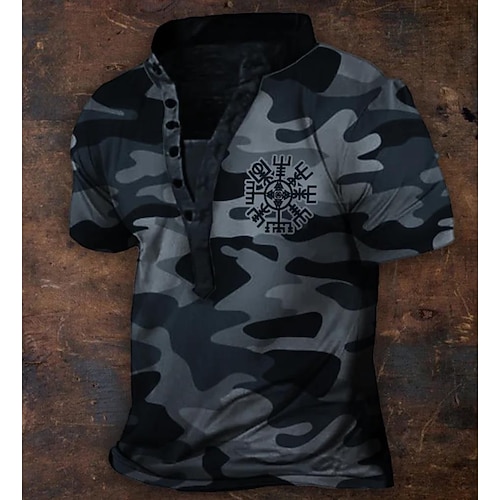 Per uomo Mimetico Maglietta Maglia Henley Manica Corta Designer Essenziale Classico All'aperto Quotidiano Sportivo Estate Marrone scuro Blu Verde Henley Maglietta Henley