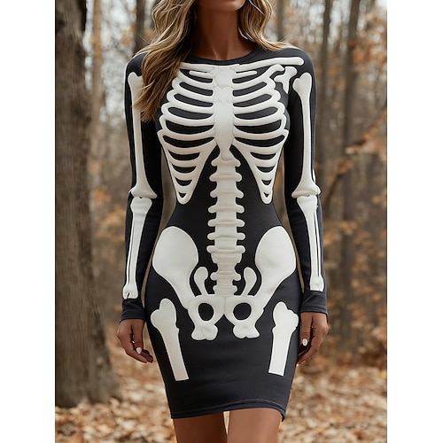 Per donna Mini Abito Abito di Natale Abito Stampato Moda Moderno Ufficio Uscire Vestibilità regolare Grafico Fiocco di neve Manica Lunga Girocollo Blu Verde acqua Nero Verde chiaro Primavera Autunno