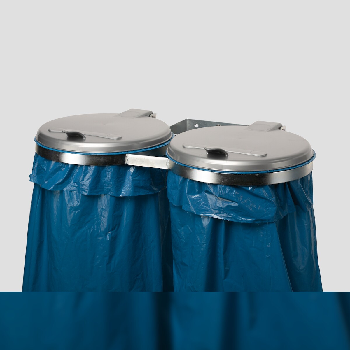 PROREGAL Robuster Doppel-Abfallsammler mit Kunststoff-Deckel | Wandhalterung | 2x 120 Liter, BxT 80x53cm | Stahl | Verzinkt-Silber | Mülleimer
