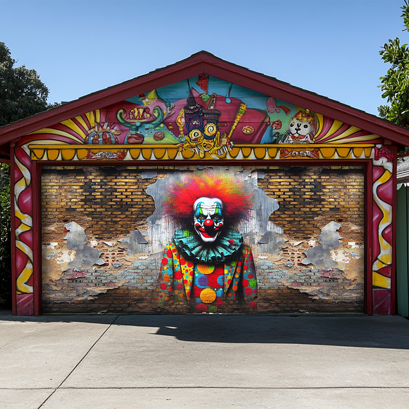 Mardi Gras Garage Door Cover Large Hanging Backdrop Clown Luxury 3D Party Outdoor Shooting Backgrounds Front Door Masquerade Home Decor
