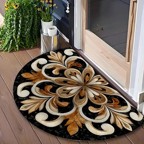 zerbino semicircolare con motivo mandala, tappeto d'ingresso, resistente allo sporco, tappetino per porta d'ingresso, corridoio, camera da letto, interno, antiscivolo, facile da pulire, tappeto per