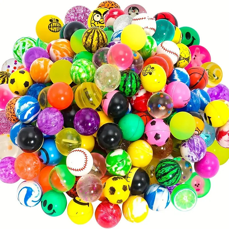 100-pack 100-Pack Premium Non-Feathered Rubber Bouncy Balls Assorted Colors Patterns for Party Favors Gifts Halloween Treats Christmas Gift