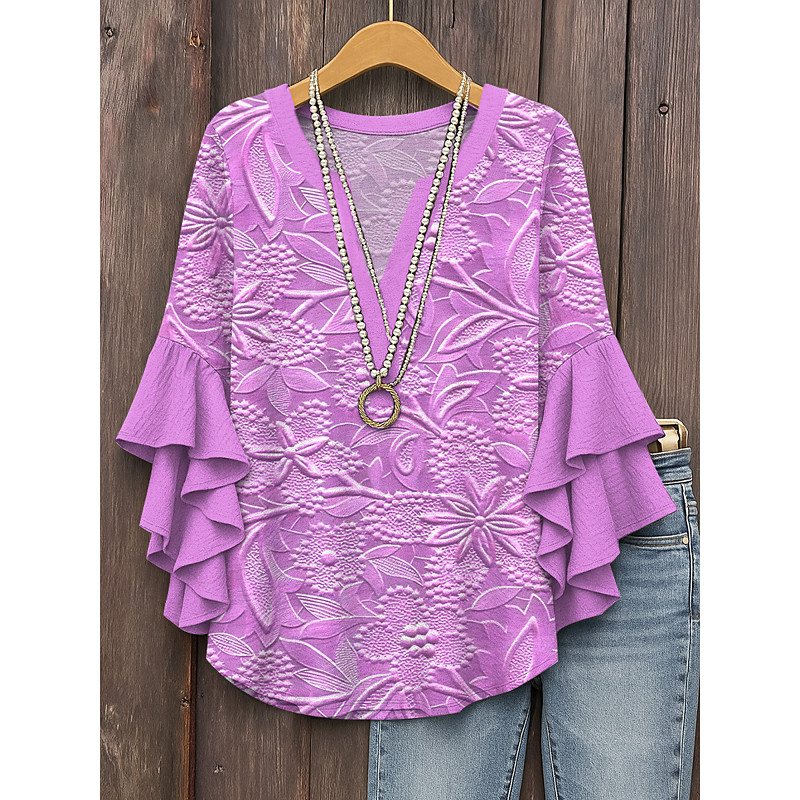 Women's Retro Blouse Layered Ruffle Sleeve Tops Vintage Floral Graphic Daily Stylish Casual 3/4 Length Sleeve Regular Tops Daily Holiday Vacation Wear Print Pink Blue Purple Khaki Summer
