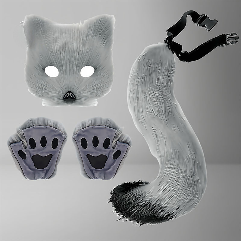 Fox Tail Set with Adjustable Belt and Seductive Eye Mask – Cosplay Costume Set, Fetish Wear, Sexy Role Play Outfit for Halloween, Party, and Performance