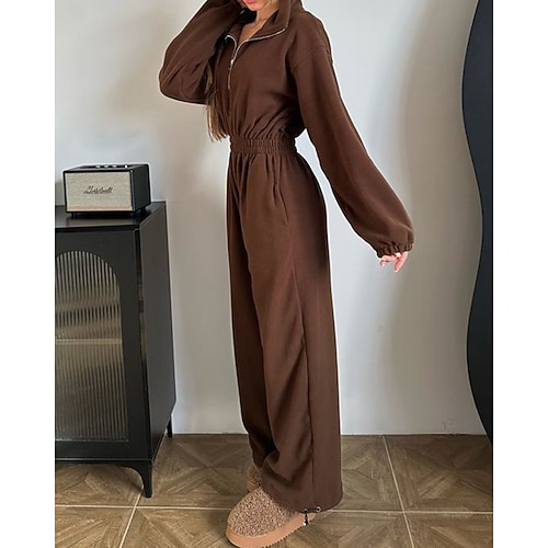Per donna Abbigliamento da Casa Tutina Moda Canotta sportiva Casual Colore Puro Cerniera Vacanza Casa Data Manica Lunga Colletto a Camicia Nero Bianco Vino Marrone Grigio scuro Primavera Autunno
