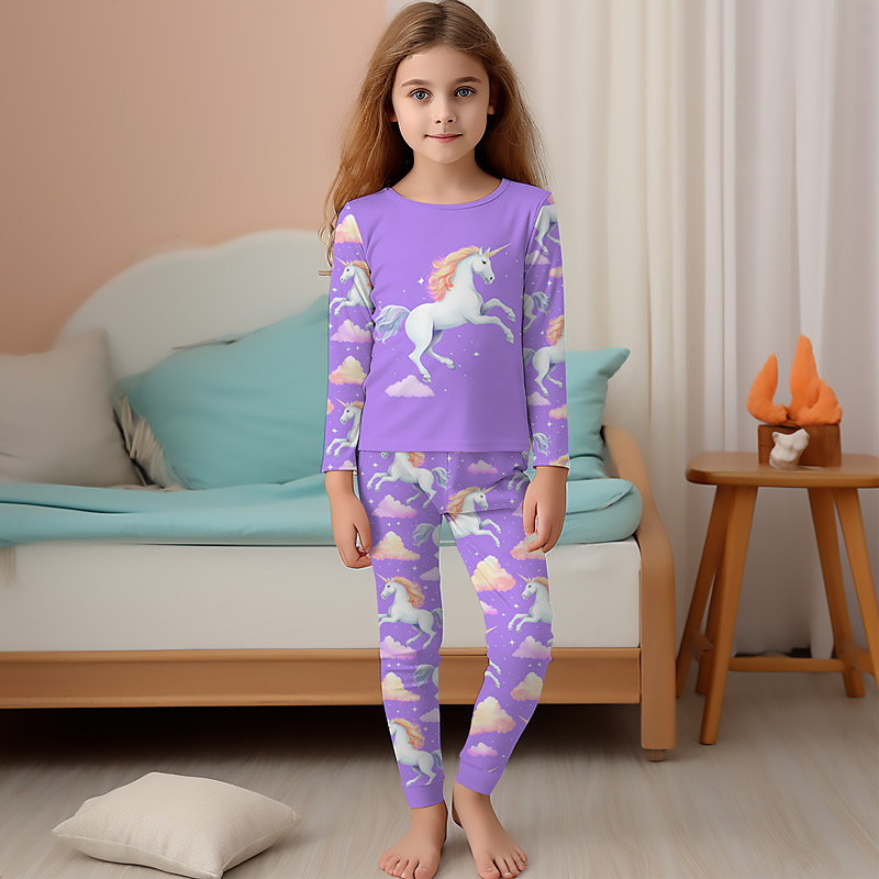 Girls' 3D Unicorn Pajama Sets Pink Long Sleeve 3D Print Fall Winter Active Fashion Cute Kids 3-12 Years Crew Neck Home Causal Indoor Regular Fit