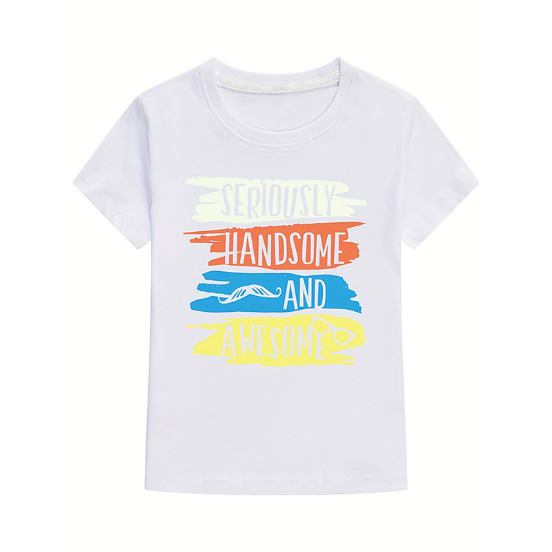 Boys 3D Letter T shirt Tee Short Sleeve Summer Spring Fashion Basic 100% Cotton Kids 4-12 Years Crew Neck Outdoor Casual Daily Regular Fit