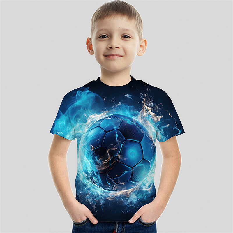 Boys 3D Football T shirt Tee Short Sleeve Summer Spring Fashion Basic Kids 4-12 Years Crew Neck Outdoor Casual Daily Regular Fit