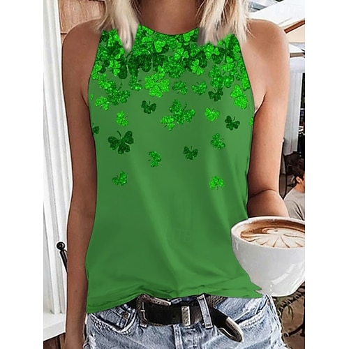 T-shirt grafica da donna per il Giorno di San Patrizio bandiera vintage tropicale elegante senza maniche collo rotondo top regolari stampa quotidiana nera bianca estate primavera