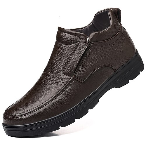 stivali slip-on da uomo in similpelle marrone con fodera isolante: calzature calde ed eleganti per il freddo e le avventure all'aria aperta