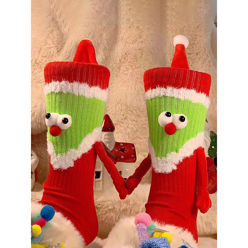 Women's Christmas Funny Cartoon Socks - Cozy Red and Green Santa Style Winter Warm Socks for Holiday Party and Gift