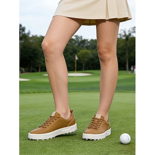 scarpe da golf marroni da donna – classiche scarpe da golf casual con lacci per donna, suola chiodata resistente per campi da golf, passeggiate, sport all'aria aperta e uso quotidiano
