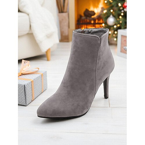 stivaletti da donna in pelle scamosciata grigia foderata in pelliccia – stivaletti invernali caldi con tacco spesso e suola a carrarmato, con cerniera laterale per il freddo