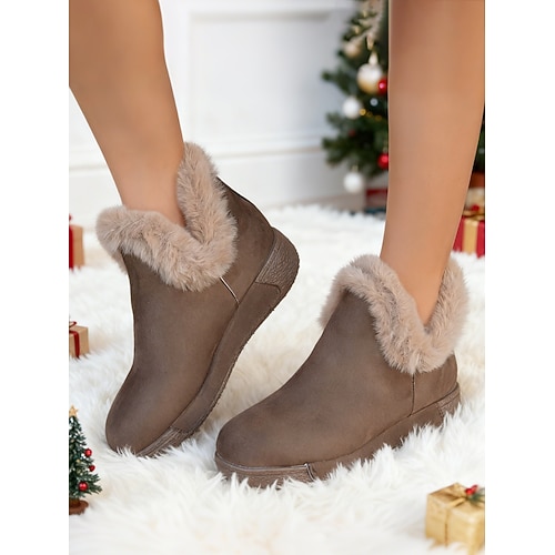 stivali da neve invernali caldi da donna con fodera in pelliccia sintetica e cerniera laterale, stivaletti antiscivolo impermeabili per l'uso all'aperto