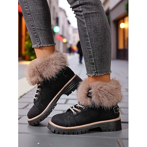 stivali invernali da donna foderati in pelliccia sintetica con fibbia - caldi, antiscivolo, stile casual per le giornate nevose avventure all'aria aperta