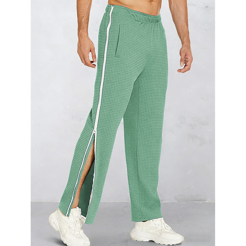 Men's Sweatpants Tear Away Pants Trousers Straight Leg Sweatpants Waffle Pants Drawstring Zipper Pocket Color Block Comfort Soft Casual Daily Outdoor Vacation Fashion Black Light Green Micro-elastic