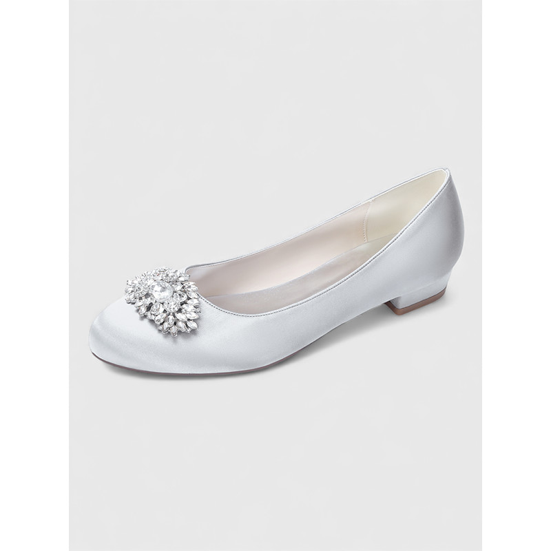 Women's Elegant Satin Flats with Rhinestone Embellished Toe – Classic Round-Toe Dress Shoes for Ladies, Perfect for Formal Events, Weddings, Parties Refined Everyday Wear