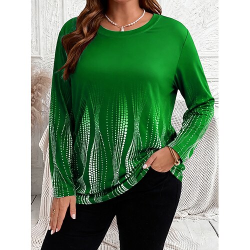 Per donna Taglia grossa Top Maglietta Geometria Stampato Manica Lunga Girocollo Casual Quotidiano Poliestere Autunno Inverno Blu Vino