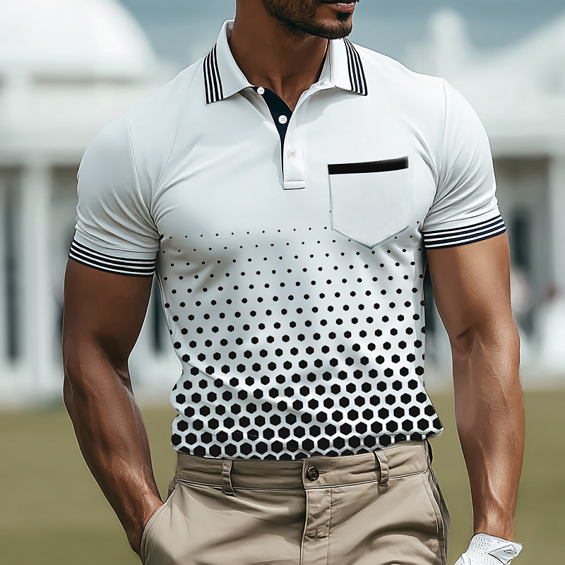 Men's Geometic Golf Polo Sports Polo Shirts Short Sleeve Polo Shirts Sportswear Athleisure Daily Wear 3D Print Buttons Spring Fall White Brown Green