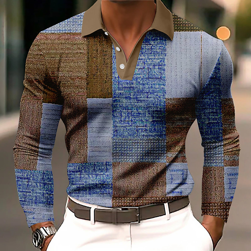 Men's Geometic Polo Long Sleeve Polo Shirts Collared Shirts Casual Outdoor Athleisure 3D Print Spring Fall Winter Blue Brown Army Green
