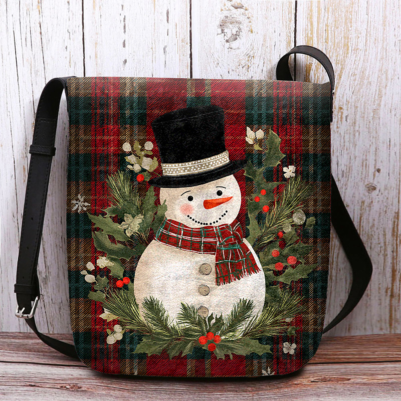Women's Christmas Snowman Crossbody Bag - Snowman and Snowflake Print for Holiday Shopping, Christmas Parties and Winter Outings