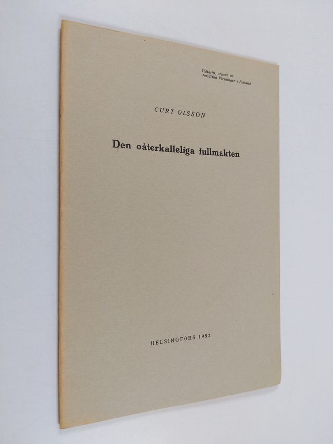Curt Olsson : Den oåterkalleliga fullmakten (särtryck ur "Tidskrift, utgiven av Juridisk Föreningen i Finland" 1952. Häft 4-5)