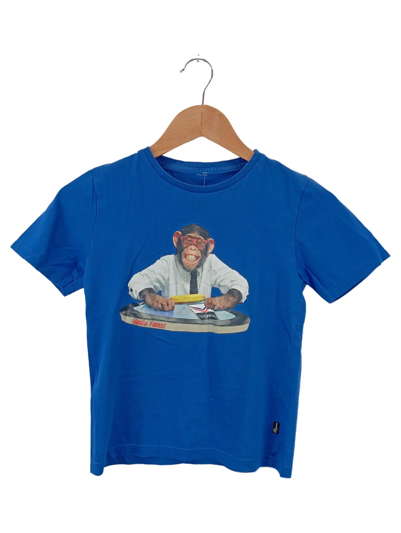 TRIGEMA Kinder T-Shirt Blau DJ-Affe Motiv Baumwolle Gr. 128