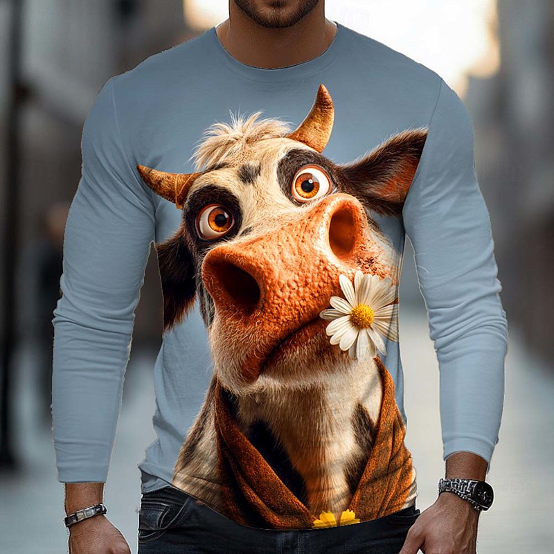 Men's Animal 3D Funny T Shirt Long Sleeve T shirt 3D Print Crew Neck Shirt Fashion Basic Street Casual Daily White 1 White Blue Summer Spring Clothing Apparel S M L XL XXL XXXL