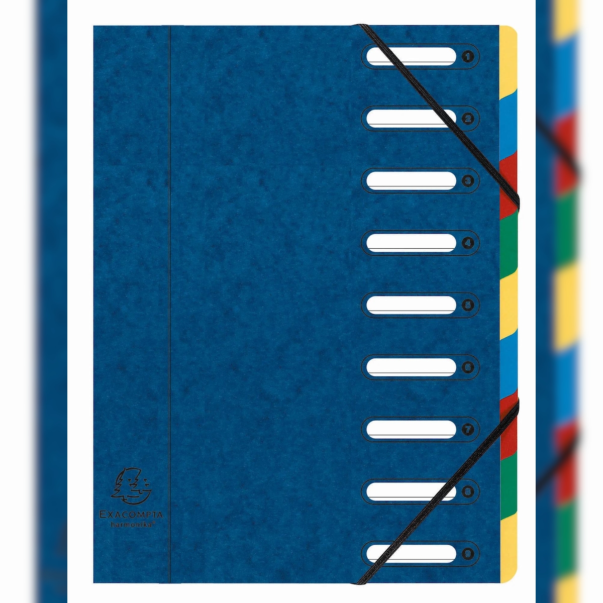 Exacompta 5309E 6x Ordnungsmappe HARMONIKA mit ausgestanzten Fenstern und Gummizug, aus Colorspan-Karton, 9 Fächer, für DIN A4 - Farben sortiert