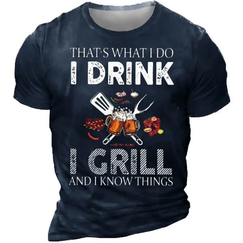 Mens 'I Drink I Grill And I Know Things' Graphic T-Shirt - Funny BBQ Beer Lifestyle Tee