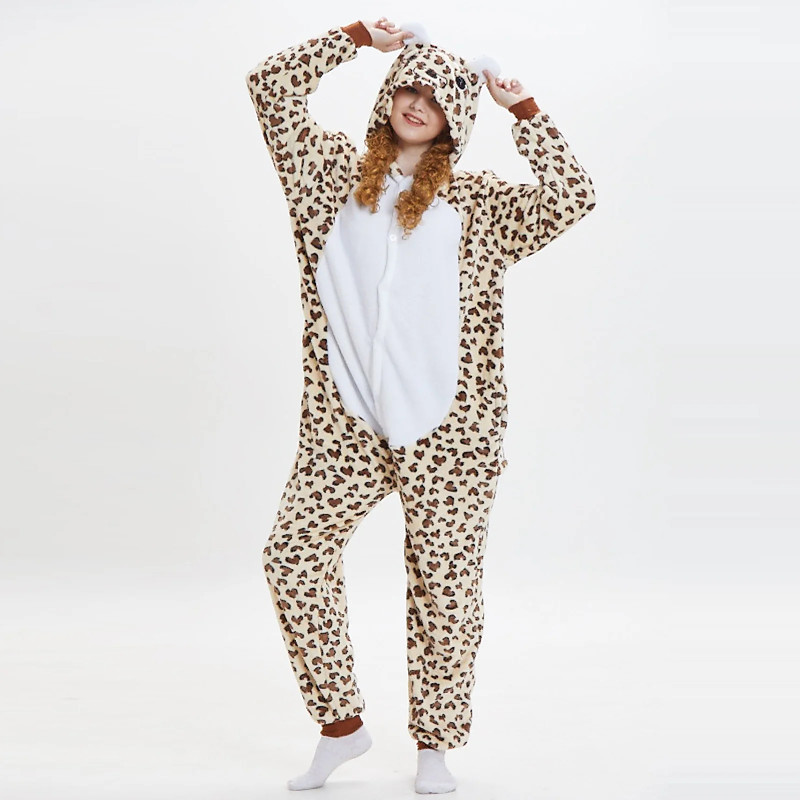 Carnival Costume 2026 Animal Leopard Carnival Kigurumi Pajamas Group Costume Onesie Costume Warm Comfy Hooded Fleece Kid's Adults' Men's Women's Boys' Halloween Carnival Party Performance Homewear