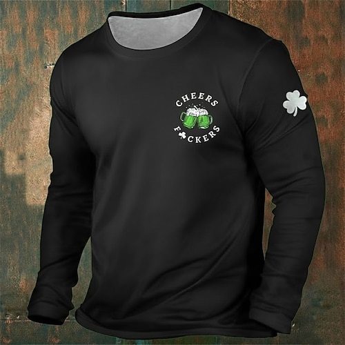 St. Patrick Herren Grafik Kleeblatt Bier T Shirt Henley Hemd T-Shirt Langarmshirt Langarm T-Shirt 3D-Druck Henley Hemd Mode Basic Klassisch Täglich Urlaub St.Patrick's Day Schwarz Grün Frühling Herbst