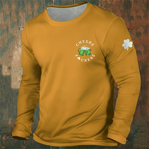 Herren St. Patrick Kleeblatt Bier T Shirt Henley Hemd T-Shirt Langarm 3D-Druck Mode Lässig Lässig Ferien Ausgehen Frühling Herbst Blau Grün 1# Grün 2# Schwarz Henley Henley T-Shirt