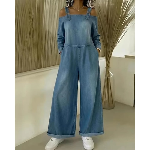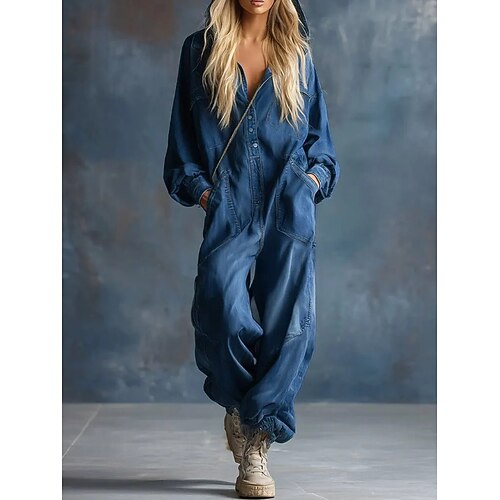 Per donna Salopette Elegante Manica Lunga Scollo a V Quotidiano Vacanza Vestibilità comoda Blu Nero Blu marino Primavera