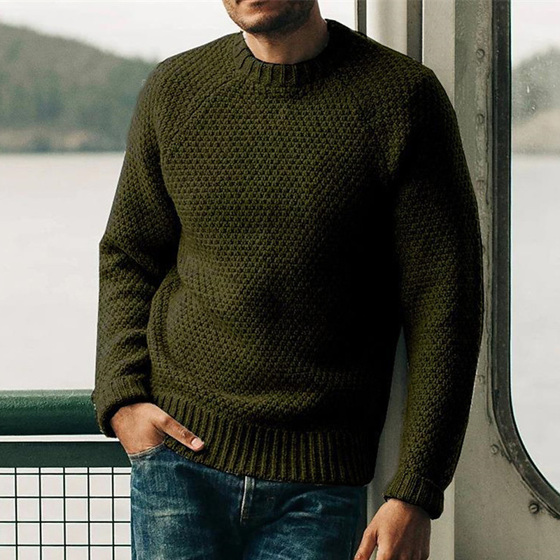 Men's Pullover Sweater Jumper Knit Sweater Ribbed Crochet Knit Regular Knitted Plain Crew Neck Fashion Basic Daily Wear Date Clothing Apparel Fall Winter Black White S M L