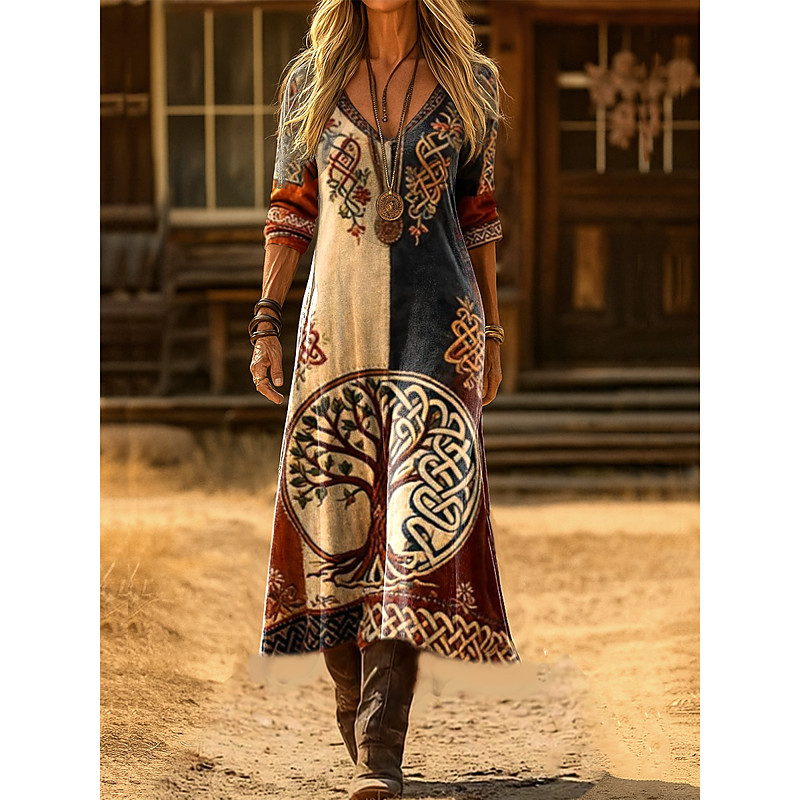 Women's Maxi Dress Sheath Dress Party Casual Boho Daily Date Going out Regular Fit Graphic Geometric Paisley Long Sleeve V Neck Blue Black Light Brown Purple Spring Fall Winter Autumn