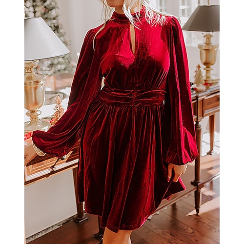 Per donna Mini Abito Abito di Natale Abito in Velluto Vestito da Festa Tubino Elegante Moda Moderno Feste Natale Occasione speciale Vestibilità regolare Semplice Manica Lunga Collo alla coreana Nero